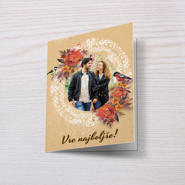 Na naslovnici in v notranjosti voščilnice lahko dodate tekst po želji.