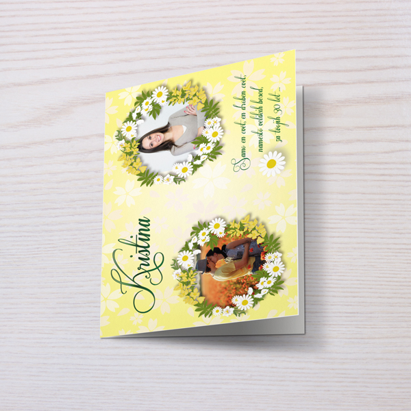 Na naslovnici in v notranjosti voščilnice lahko dodate tekst po želji.