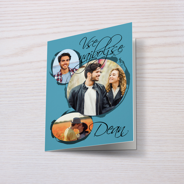 Na naslovnici in v notranjosti voščilnice lahko dodate tekst po želji.
